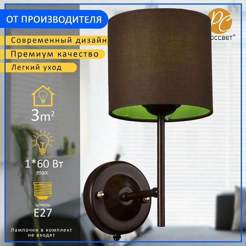 Светильник настенный бра с выключателем под лампу Е27, зеленый/дерево