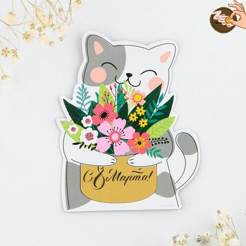 Магнит на холодильник со скретч-слоем "С праздником 8 марта", 7 х 7 см