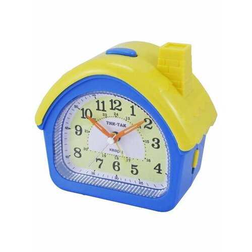 синийДетский будильник Тик-Так Б-824 станет хорошим подарком для детей в возрасте 5-10 лет. Данная модель имеет несколько вариантов цвета корпуса. Каждому цвету корпуса соответствует свой рисунок на циферблате. Корпус будильника изготовлен из пластика, к которому крепятся два металлических колокольчика, окрашенных в цвет корпуса. При звонке молоточек ударяет по колокольчикам. Стекло у будильника – минеральное. У будильника громкий механический звонок. Включение и выключение будильника осуществляется переключателем, находящемся на задней стороне корпуса. Будильник имеет подсветку. Подсветка включается кнопкой, которая находится на задней стороне корпуса. В будильник установлен механизм с шаговым ходом секундной стрелки. Будильник работает от одной батарейки типа АА. Батарейка в комплект не входит. Размеры корпуса (мм): 78(Ш)х125(В)х46(Г). Комплект поставки: будильник, инструкция по эксплуатации, фирменная упаковочная коробка.