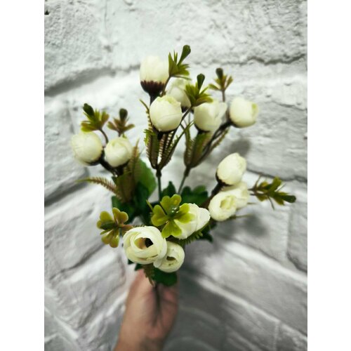 Куст искусственных цветов 31см. 5 ветвей, 13 цветков. Камелия, пион, ранункулюс, пионовидная роза. Цвет Бедра испуганной нимфы