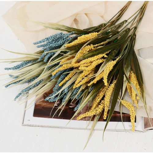 Букет "Лаванда" изготовлен из различных материалов: пластик, текстиль и металл. Это обеспечивает его долговечность и устойчивость к внешним воздействиям.