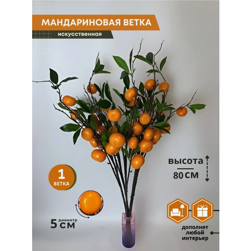 Ветвь мандарина 80 см на 7 плодов 1 шт. Искусственная. Оранжевый