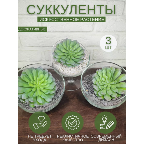 Суккулент декоративный 14 см. 3 штуки. Зеленый с красным центром