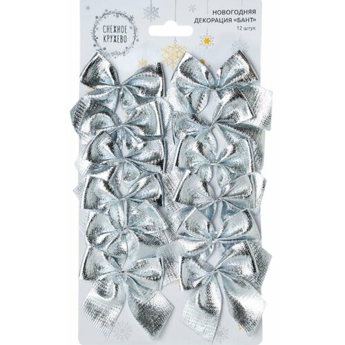 Набор елочных украшений Бант Снежное кружево, серебристый, 12 шт.