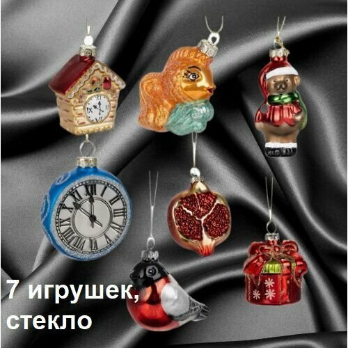 Набор елочных игрушек, 7 шт, "Снежное кружево", по 8-9см, стекло