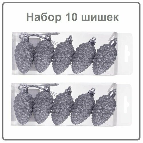 Новогодняя елочная игрушка, Шишка серебро - 10 штук по 6см, декор ёлки, полиэстер