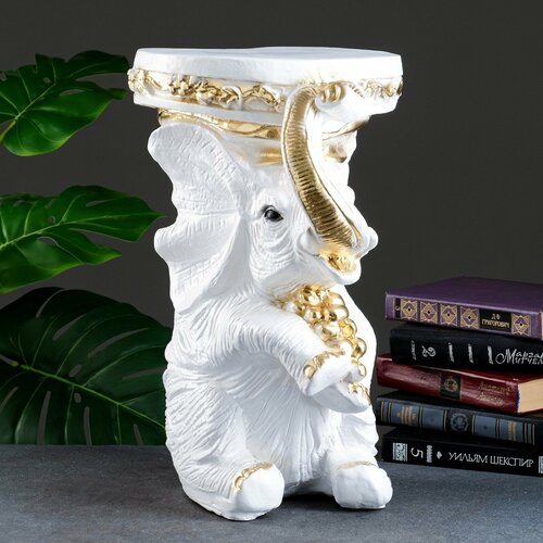 Фигура - подставка "Слон сидя" белое золото, 34х26х44см