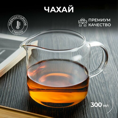 Прозрачный стеклянный чайный сливник с ручкой 300 мл SAMADOYO, Сливник для чая (чахай), Стеклянная посуда для чайной церемонии