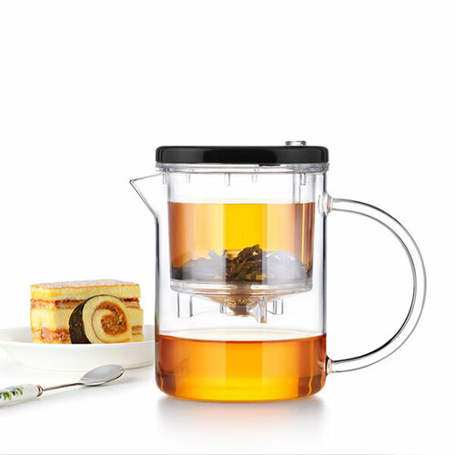 Чашка стеклянная с пластиковой ручкой, крышкой и фильтром LV-03A-500 500мл Samadoyo
