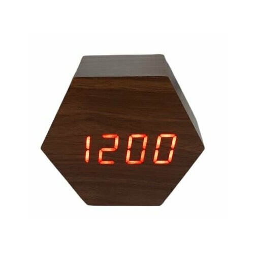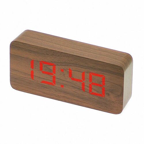 Часы LED с термометром VST-876 коричнев дерево красные цифры