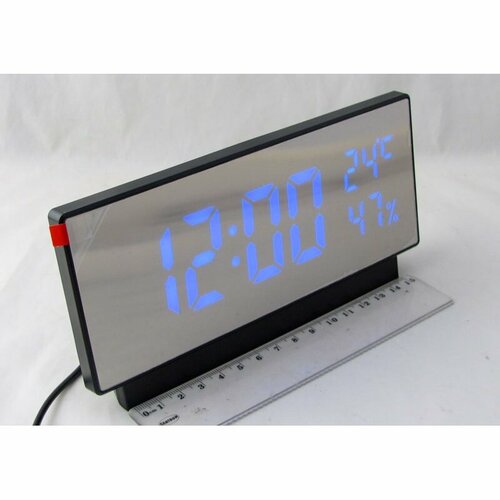 Часы электронные VST-730, синяя подсветка, часы-будильник от сети 220В синий, серебристый, черный