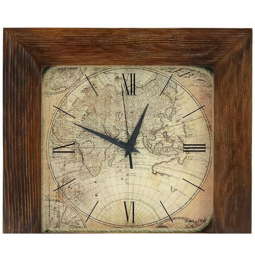 Часы настенные TROYKA 11131150, круг, бежевые с рисунком "Карта", коричневая рамка, 29х29х3,5 см