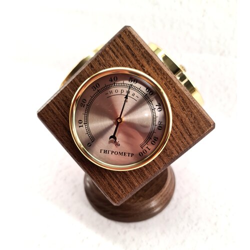 Метеостанция настольная куб деревянная механическая домашняя барометр термометр гигрометр смич БМ80 массив дерева размер 14х17х14см
