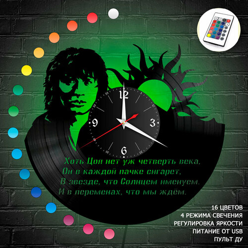 Часы с подсветкой Виктор Цой из винила, №6