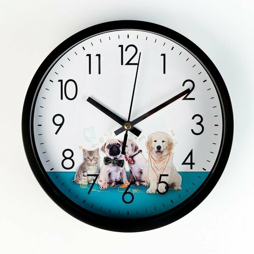 Часы настенные, серия: Интерьер, "Котенок и щенята", плавный ход, d-20 см