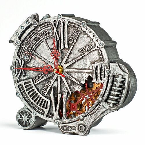 Часы настольные Автоматон 1789 Готика с вращающимися шестеренками "Старый металл" WODANDROOT