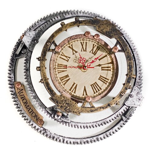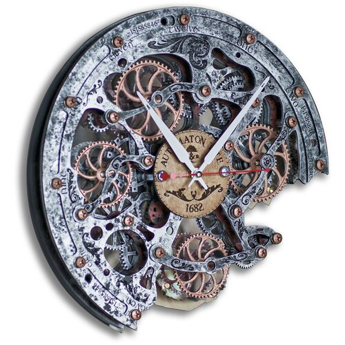 Часы Настенные Автоматон Bite 1682 Circle "Цельнометаллическая оболочка" с вращающимися шестеренками WOODANDROOT