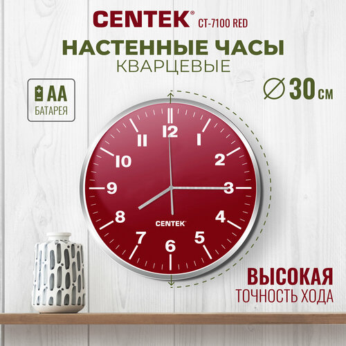 Часы настенные кварцевые CENTEK CT-7100 red светлый 30 см