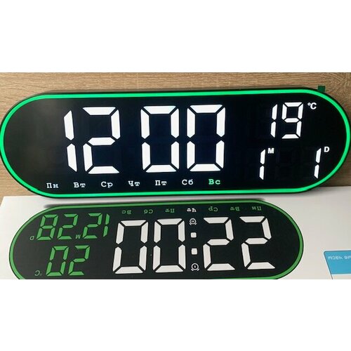 Часы настенные электронные 39см х 13см /белый+зеленый