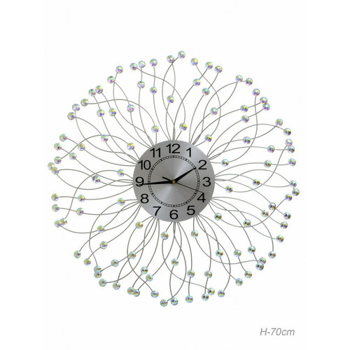 Часы настенные серебро стразы 70 см / F002-S /уп 10/ Стоимость за 1 шт