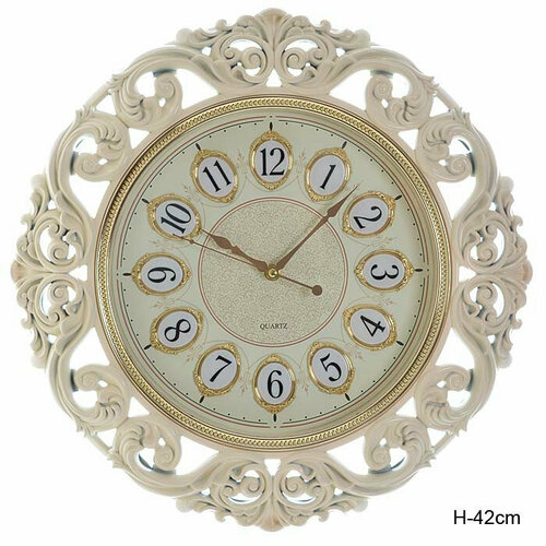 Кварцевые настенные часы Классика D=39.5 см, ажурные часы с плавным ходом для дома, Белый + Золото