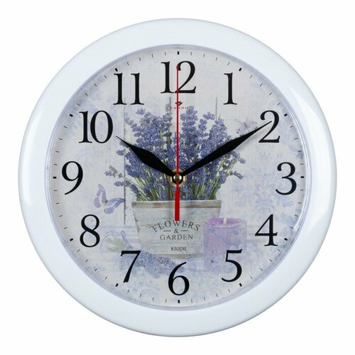 Часы настенные, серия: Цветы, "Сиреневый букет", d-24.5 см, корпус белый