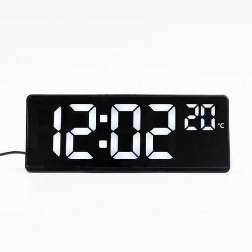 Часы электронные настольные, с будильником, термометром, 2 ААА, белые цифры,17.5 х 6.8 см