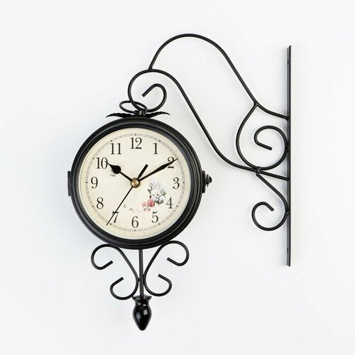 Часы настенные двусторонние, на подвесе "Весенние", плавный ход, d-12 см, 34.5 х 16 см