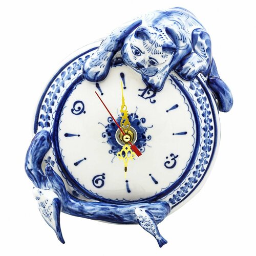 Часы интерьерные "Кот" 13х11х24 см гжель фарфор ручная работа