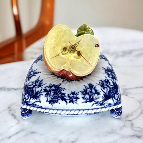 Часы интерьерные "подушка Яблоко" (17,5*17,5*14,5) гжель ручная работа