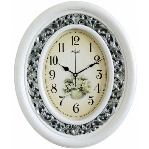 Часы настенные круг ажурный 40,5см, корпус белый с серебром "Классика" "Рубин" Настенные часы, электронные часы на стену. Бесшумные часы для дома.