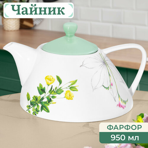 Чайник заварочный 950 мл Elan Gallery "Ботанический атлас" с зеленой крышкой
