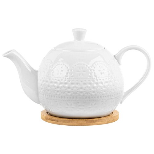 Чайник заварочный 1,1 л 23х13,5х14,5 см Кружево, на деревянной подставке