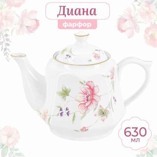 Чайник заварочный 630 мл Elan Gallery Диана, 18,5х12х13,5 см, фарфор