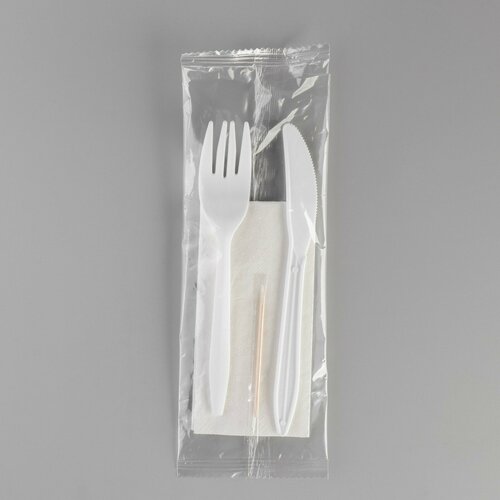 Набор биоразлагаемых приборов "Вилка, нож, зубочистка, салф. бум."