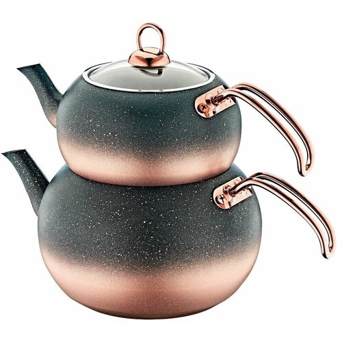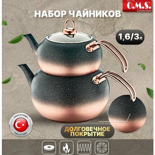 Набор из 2 чайников для индукционной и газовой плиты. O.M.S. Collection Чайник для плиты 3 л, заварочный чайник 1,6, л. Цвет: черно-медный.