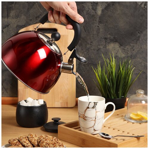 Чайник нержавеющая сталь, 2.7 л, со свистком, зеркальный, ручка бакелитовая, с силиконовым покрытием, Daniks, индукция