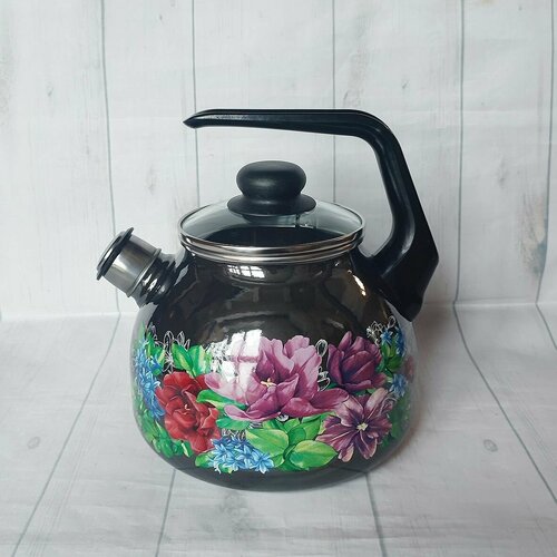 Чайник VITROSS, эмаль, 3,0л, со свистком сфера стекл. крышка CATALINA мокрый асфальт(4)