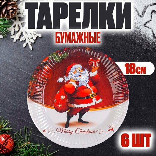 Тарелка бумажная «Дед Мороз с подарками», набор 6 шт.