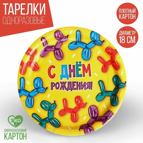 Тарелка бумажная Happy Birthday, шары, набор 6 шт, 18 см