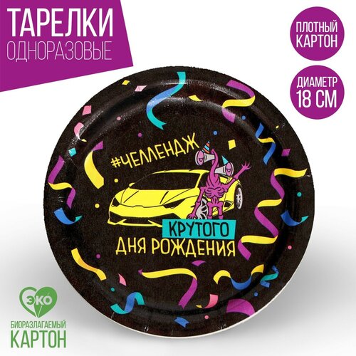 Тарелка бумажная «Крутого дня рождения», набор 6 шт, 18 см