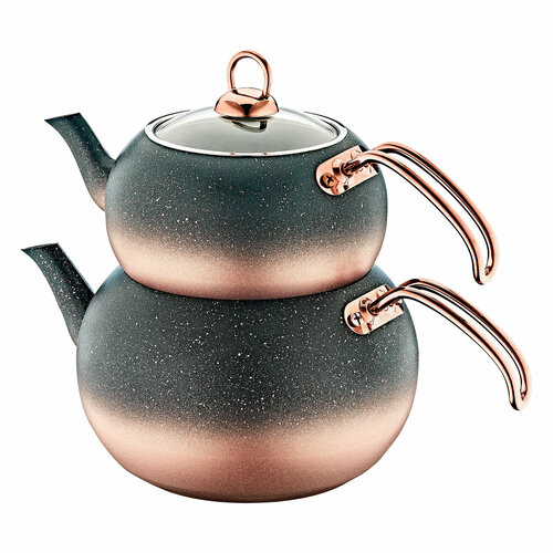 Набор из 2 чайников. O.M.S. Чайник для плиты 3,75 л, заварочный чайник 1,8 л. Черно-золотой.