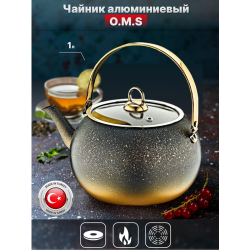 Чайник 1 л для газовой плиты. O.M.S. Collection. Цвет: черно-золотой.