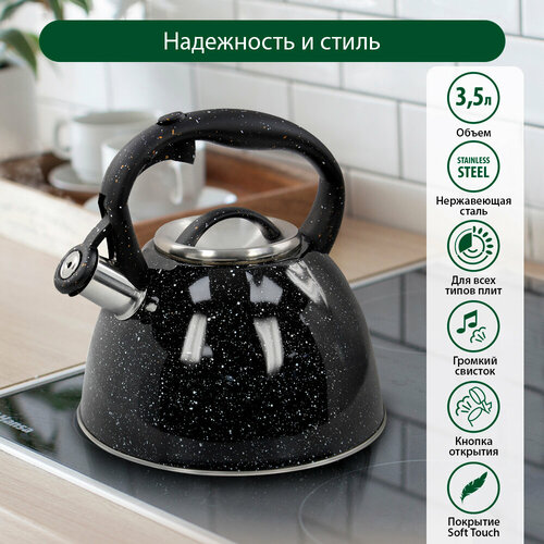 Чайник металлический со свистком MARTA MT-3082 черный камень