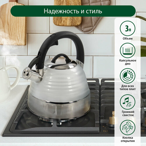 3,0 л, нерж. сталь, ручка из термостойкого пластика, подходит для газовых, электрических, индукционных плит