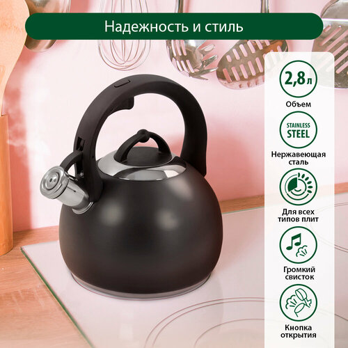 Чайник металлический со свистком MARTA MT-3091 черный матовый