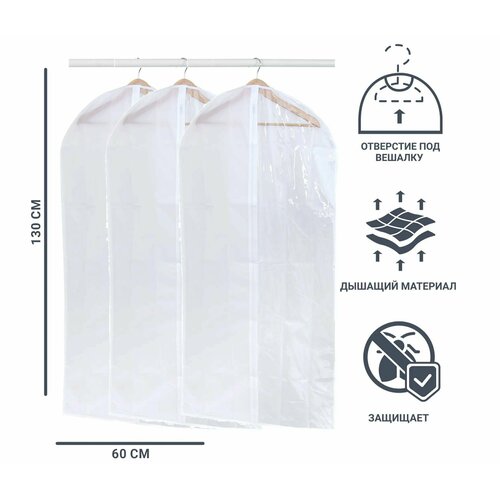 Чехол для одежды 60x130 см 3 шт полиэстер