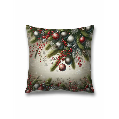 Наволочка декоративная на молнии, чехол на подушку JoyArty "Зимние ягоды" 45х45 см