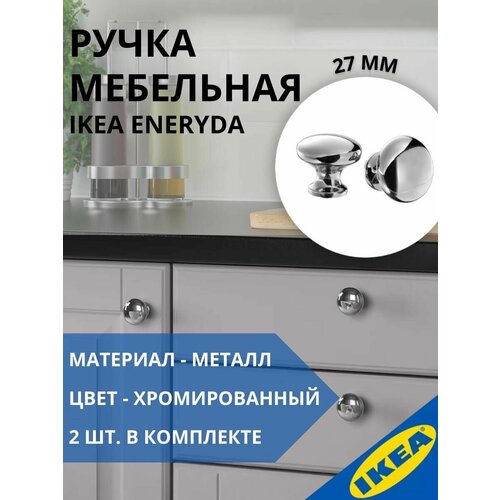 Ручка мебельная IKEA ENERYDA, 27 мм, 2шт, хромированный