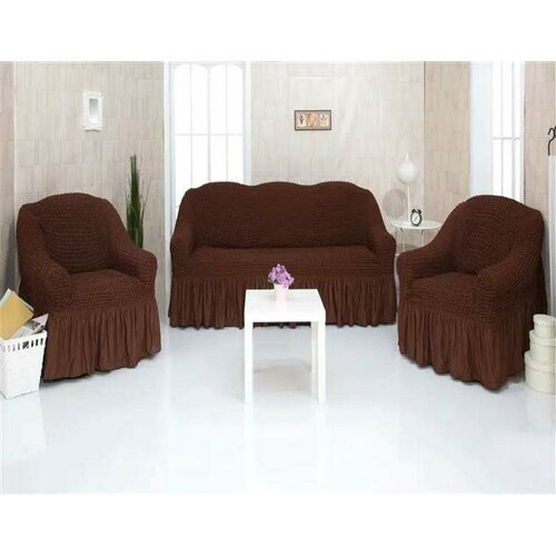 «ЧМ15201» комплект чехлов с оборкой на диван и два кресла, шоколадный